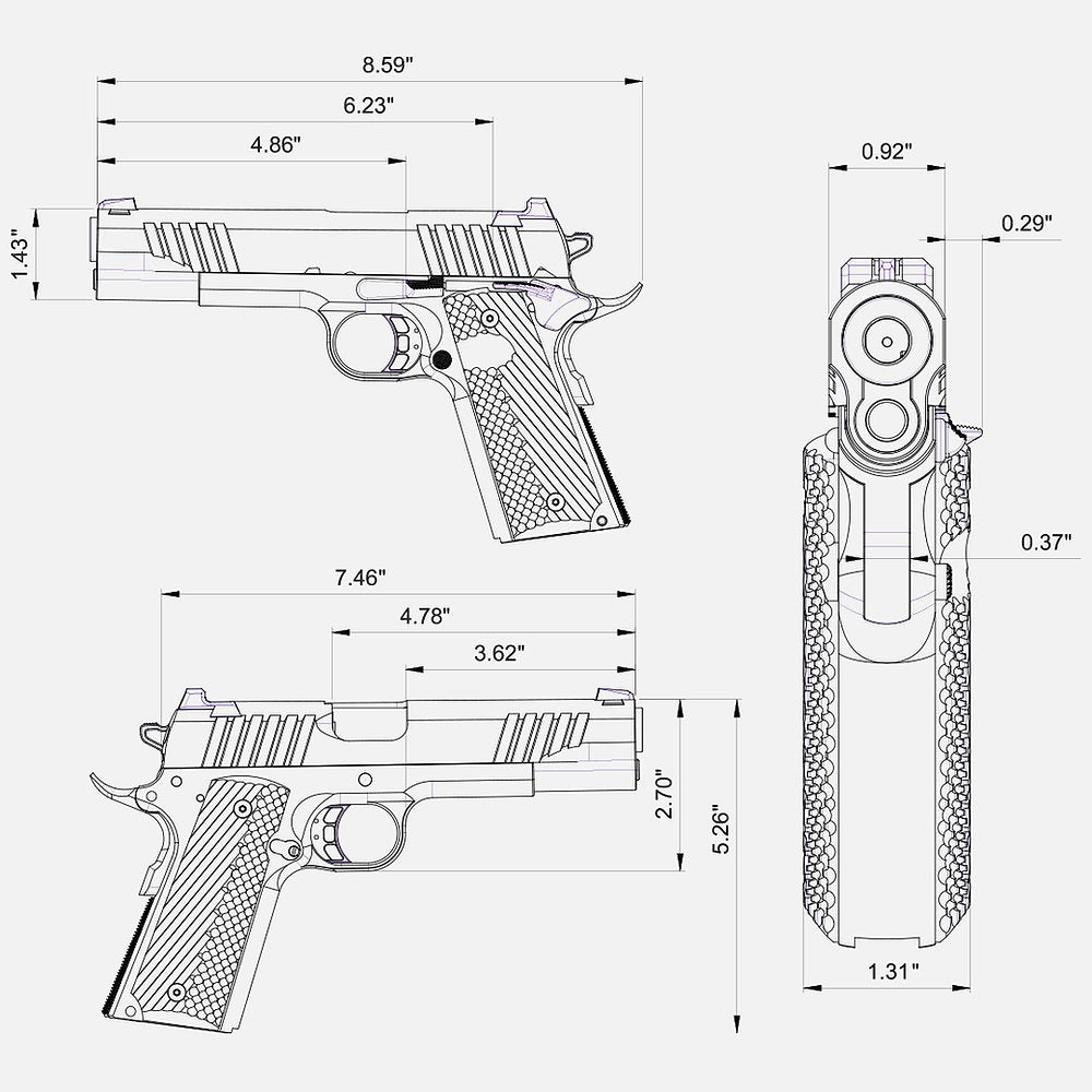 Capacity: 9mm - 10 rounds / .45ACP - 8 rounds