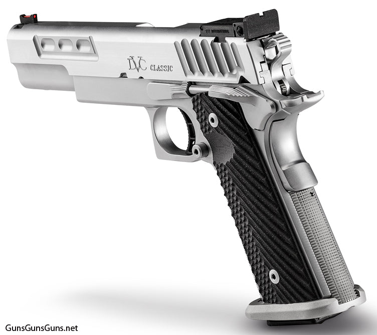 Legal for IPSC Classic division, the DVC Classic, like the rest of the DVC Series—is built to win. This gun is perfect for the single-stack competitor with its fully adjustable rear sight, forged Master Series frame and VZ Operator II Grips. The Classic features the same 2.5lb crisp trigger as in all STI DVC guns, along with the same hammer and sear. The hard chrome finish and TiN BBL coating are sure to last for years of use. This gun also features multiple parts built by Dawson Precision, including; a tool-less guiderod, drilled and tapped extended magazine release, fiber optic front sight and ICE magazine well.