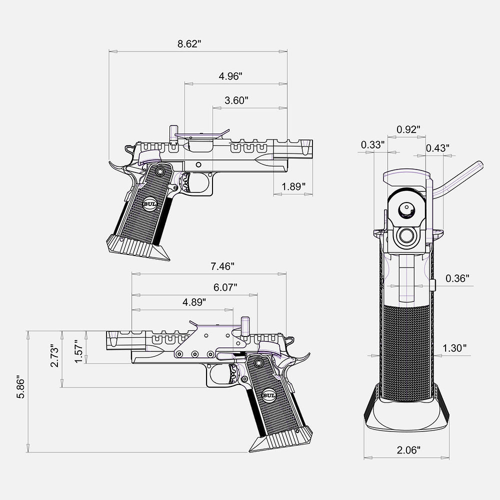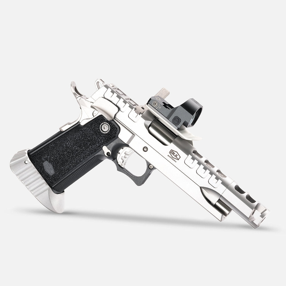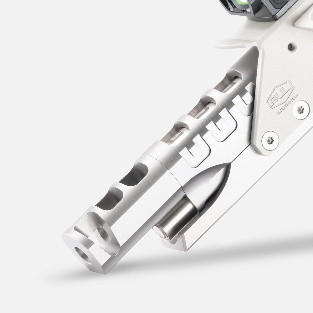 Barrel: Match grade one-piece 4.25” inch compensated ramped bull barrel.